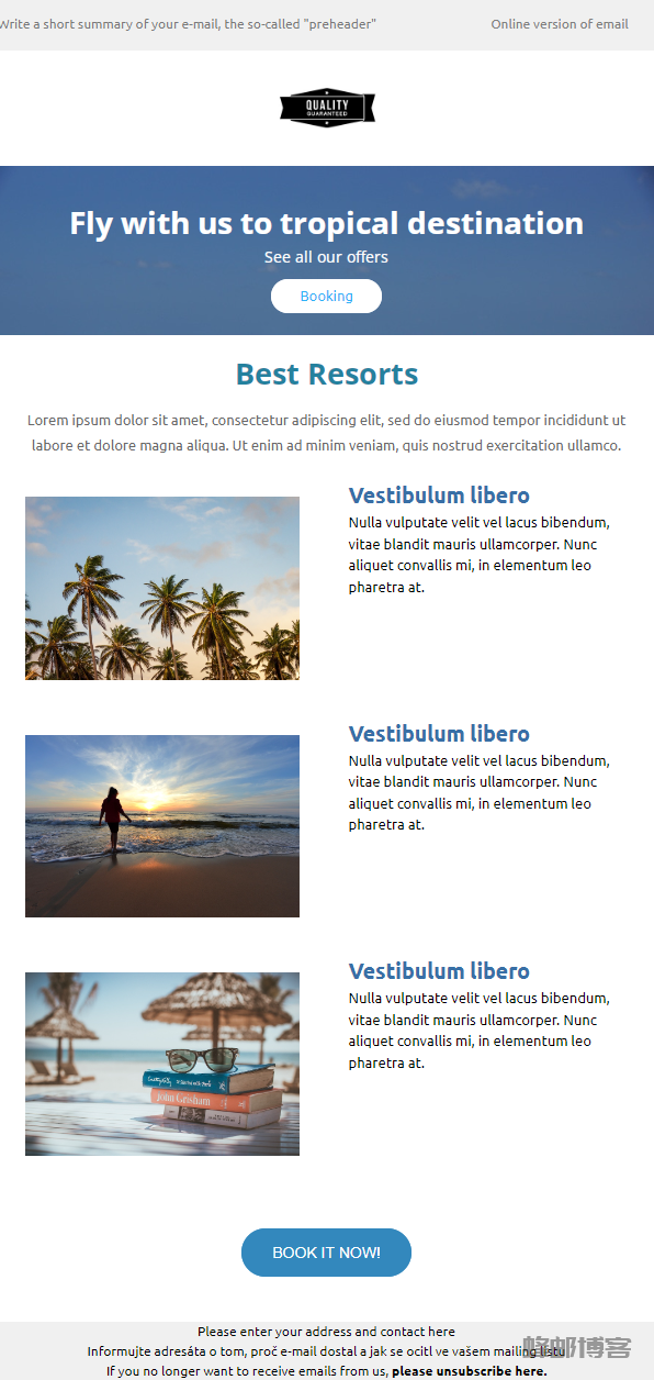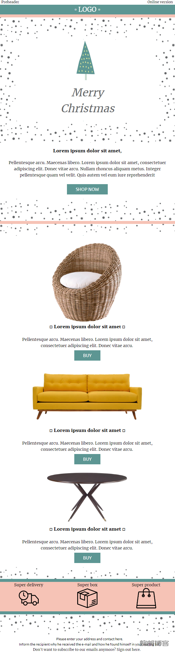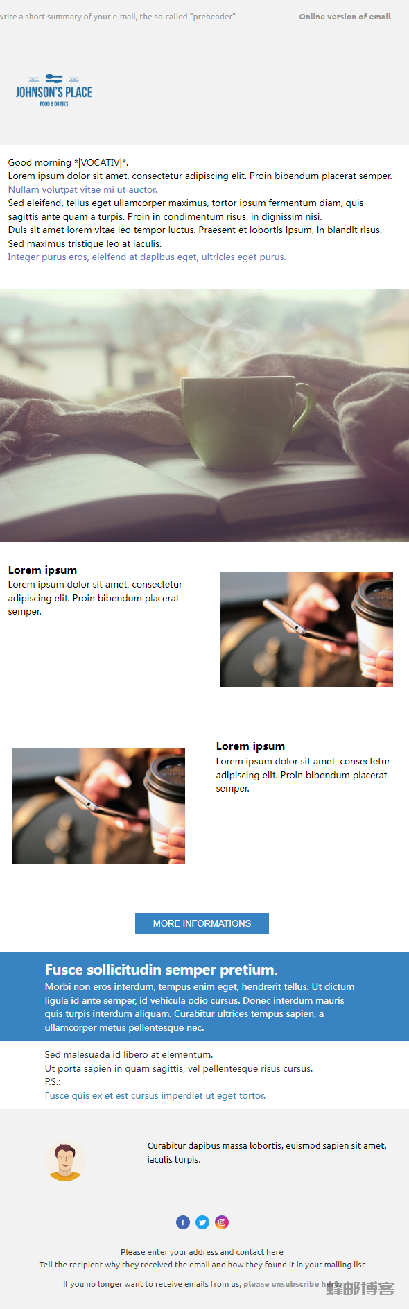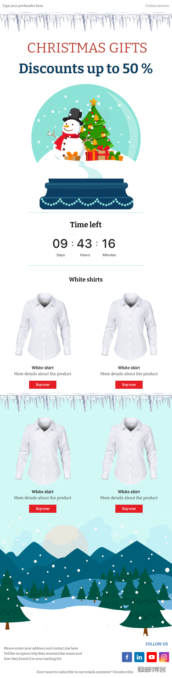 许多时候顾客很可能并不记得什么时候曾订阅过网站,因此在邮件的最下方放置联系方式以及订阅方式也是十分有必要的!